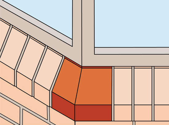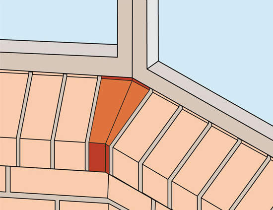 Special shaped bricks are manufactured from standard bricks, using a cut and bonded method. This process is carried out using diamond tipped blades and clean, fresh water. The bonding process takes place using a two part epoxy resign, specifically developed for this task.